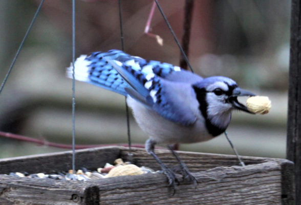 We have four Blue Jays that come to our feeder for peanuts every day. I do enjoy watching them.