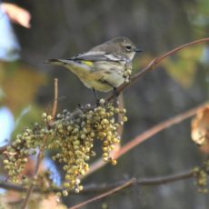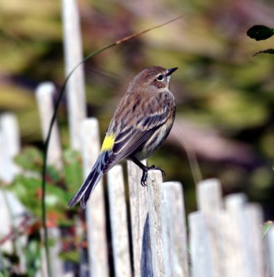 The fall plumage is different from their spring plumage (adding to the concept of ‘confusing fall warblers’). Both male and female sport the yellow rump (and are sometimes called ‘butter-butts’).