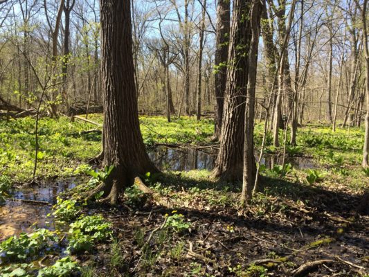 In May 2018 a large and diverse forest complex near Joliet, known as Pilcher Park, was dedicated as a Nature Preserve by the Illinois Nature Preserves Commission. The dedication culminates a nearly four-year effort by the Illinois Audubon Society, Joliet Park District, Illinois Clean Energy Community Foundation, and Illinois Nature Preserves Commission to expand and protect one of northeastern Illinois’ premier woodlands. The dedication protects in perpetuity, 293 acres as Nature Preserve and an additional 110 acres as a Land and Water Reserve at the site. The park is owned and managed by the Joliet Park District and features outstanding spring wildflower displays and old-growth trees.