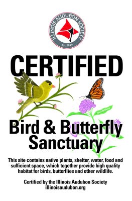 If you said yes to any of these questions, then your property can become a Certified Bird and Butterfly Sanctuary. Your sanctuary can be as small as a few native flowers arranged in a few pots on your patio or as large as a few hundred acres. You can also certify a portion of a local school yard, neighborhood park, library gardens, church yard, a farm field or grass strip, or an entire corporate campus. Approved applicants will receive a sign for display. Keep scrolling for more information.