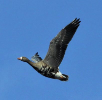 The scientific name for the greater white-fronted goose is Anser albifrons: Anser is Latin for goose, albifrons is Latin for ‘white forehead’ (you can see where it gets its name from these photos).